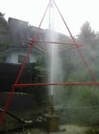 お風呂迄つながっているパイプのせんを閉め、垂直に空いたメンテナンス用(?)のお湯抜きパイプを開栓すると、勢い良く噴き出す温泉のシャワーが見られました。