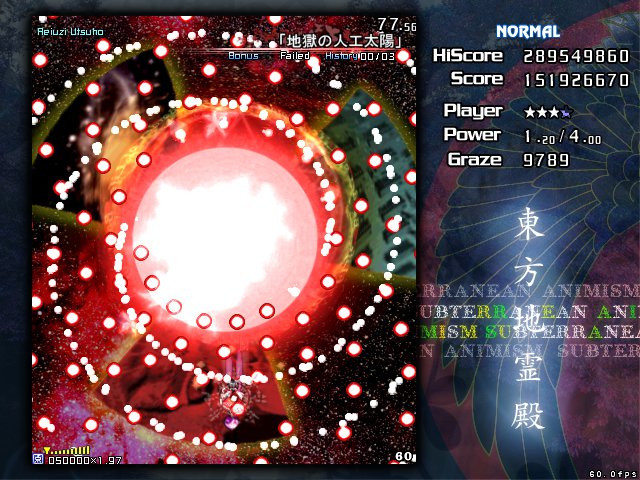 地霊殿N。霊夢Aにて二度目のクリア。
