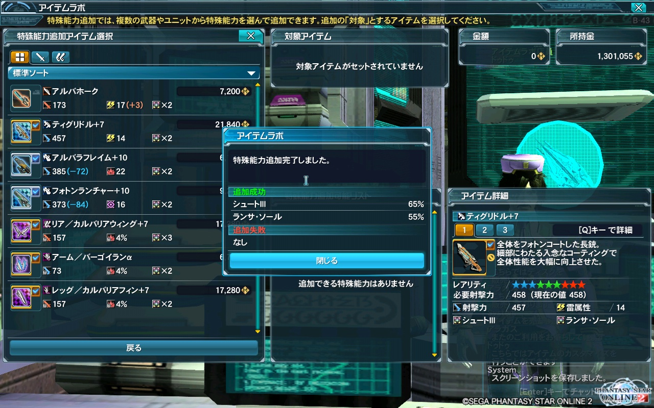 話は変わって…… ティグリドルにランサソールとシュートⅢが付きました。