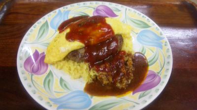 さて、話はかわって今日のご飯はハヤシ風オムライス。ハンバーグサンドです(`・ω・´)